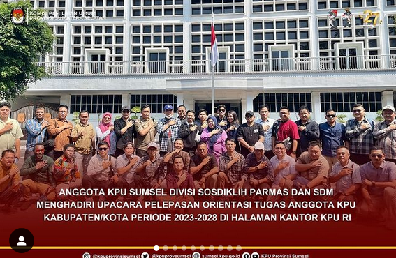 Anggota KPU Sumsel Divisi Sosdiklih Parmas Dan SDM Menghadiri Upacara Pelepasan Orientasi Tugas Anggota KPU Kabupaten/Kota Periode 2023-2028 Di Halaman Kantor KPU RI