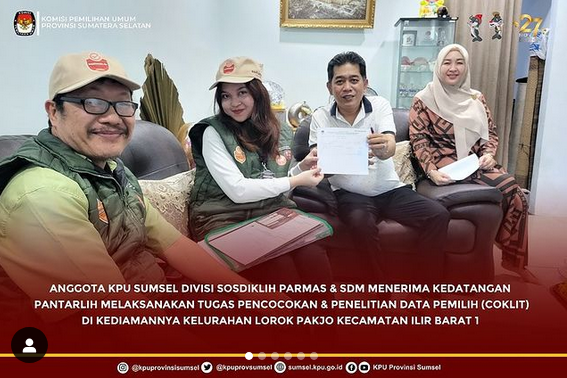 Anggota KPU Sumsel Divisi Sosdiklih Parmas & Sdm Menerima Kedatangan Pantarlih Melaksanakan Tugas Pencocokan & Penelitian Data Pemilihan Data Pemilih(Coklat)