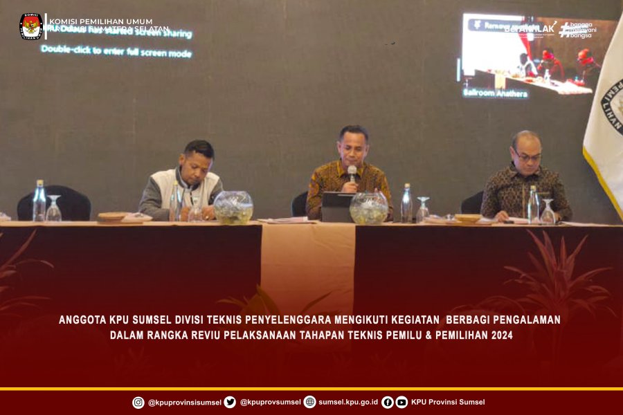 #Temanpemilih, Anggota KPU Sumsel Divisi Teknis Penyelenggara, Bapak Handoko didampingi Kabag Teknis dan Hukum menghadiri kegiatan berbagi pengalaman dalam rangka reviu pelaksanaan tahapan teknis Pemilu dan Pemilihan 2024 di Bali, Selasa (5/8/2025).