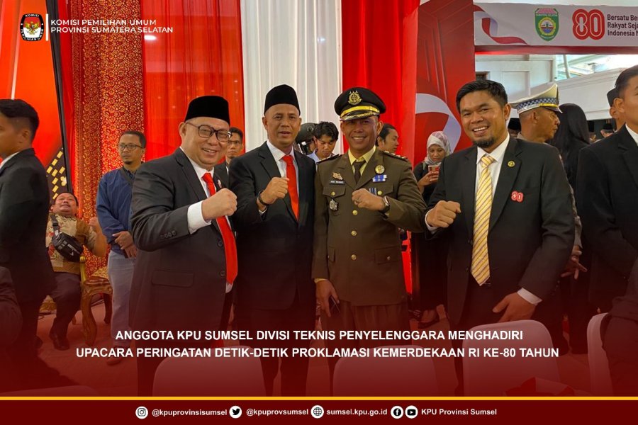 #Temanpemilih, Anggota KPU Provinsi Sumatera Selatan Divisi Teknis Penyelenggara, Bapak Handoko menghadiri upacara peringatan detik-detik proklamasi kemerdekan Republik Indonesia ke-80 Tahun di Provinsi Sumatera Selatan, Minggu (17/8/2025).