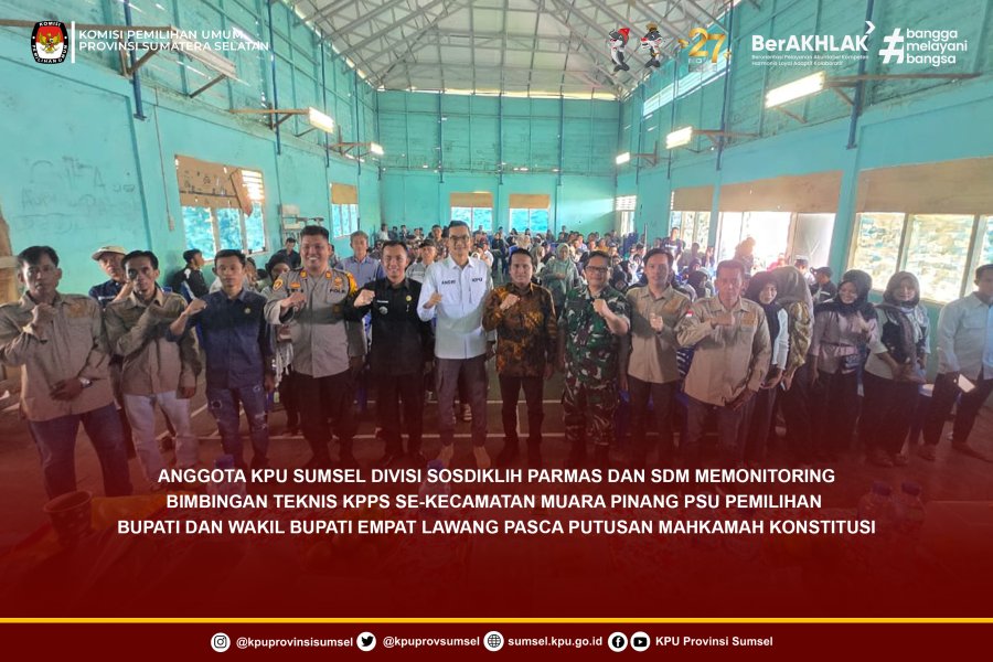 #Temanpemilih Anggota KPU Sumsel Divisi Sosdiklih Parmas dan SDM, Bapak Prahara Andri Kusuma memonitoring bimbingan teknis KPPS se-Kecamatan Muara Pinang Pemungutan Suara Ulang (PSU) Pemilihan Bupati dan Wakil Bupati Empat Lawang pasca putusan Mahkamah Konstitusi, Kamis (10/4/2025).