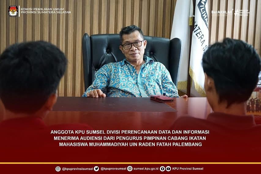 #Temanpemilih Anggota KPU Sumsel Divisi Perencanaan Data dan Informasi, Bapak Abu Yamin menerima audiensi dari pengurus Pimpinan Cabang Ikatan Mahasiswa Muhammadiyah UIN Raden Fatah Palembang, Selasa (20/5/2025).