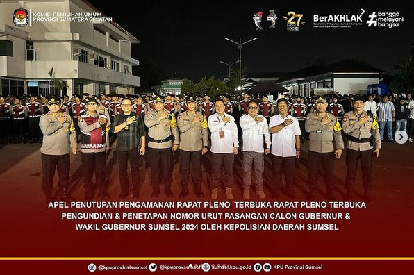 Apel Penutupan Pengamanan Rapat Pleno Terbuka Rapat Pleno Terbuka Pengundian & Penetapan Nomor Urut Pasangan Calon Gubernur & Wakil Gubernur Sumsel 2024 Oleh Kepolisian Daerah Sumsel
