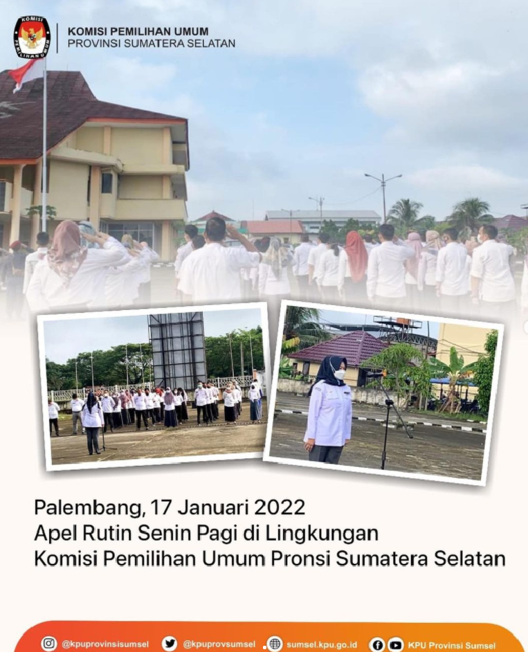 #Temanpemilih. KPU Provinsi Sumatera Selatan melaksanakan Apel Pagi Rutin yang di ikuti oleh seluruh Pegawai KPU Provinsi Sumatera Selatan