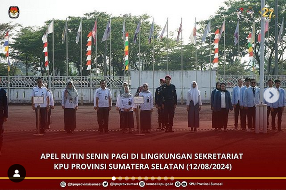 #Temanpemilih, #Temanpemilih KPU Provinsi Sumatera Selatan melaksanakan apel rutin senin pagi di lingkungan sekretariat KPU Sumsel, (12/8/2024).