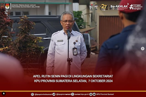 apel rutin senin pagi di lingkungan sekretariat KPU Sumsel, 7 Oktober 2024.