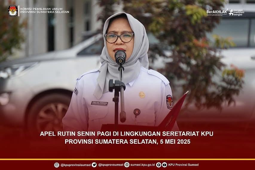 #Temanpemilih KPU Provinsi Sumatera Selatan melaksanakan apel gabungan bersama jajaran Sekretariat KPU Kota Palembang di Lingkungan KPU Sumsel, (5/5/2025).