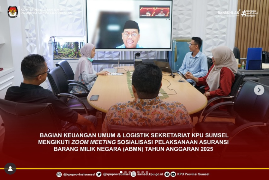 #Temanpemilih Bagian Keuangan Umum dan Logistik KPU Sumsel mengikuti zoom meeting sosialisasi pelaksanaan asuransi barang milik negara (ABMN) tahun anggaran 2025 pada Komisi Pemilihan Umum, Kamis (12/6/2025).