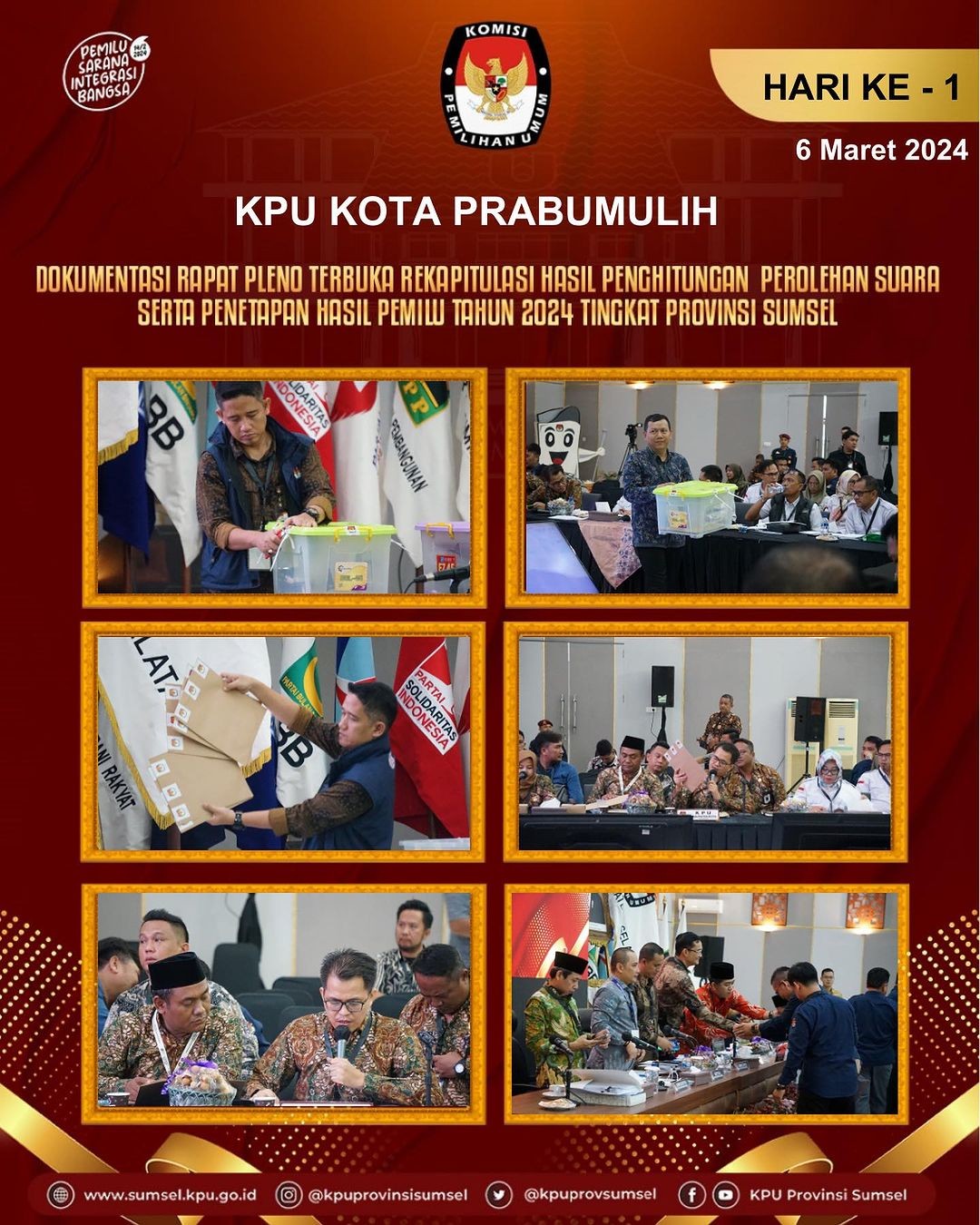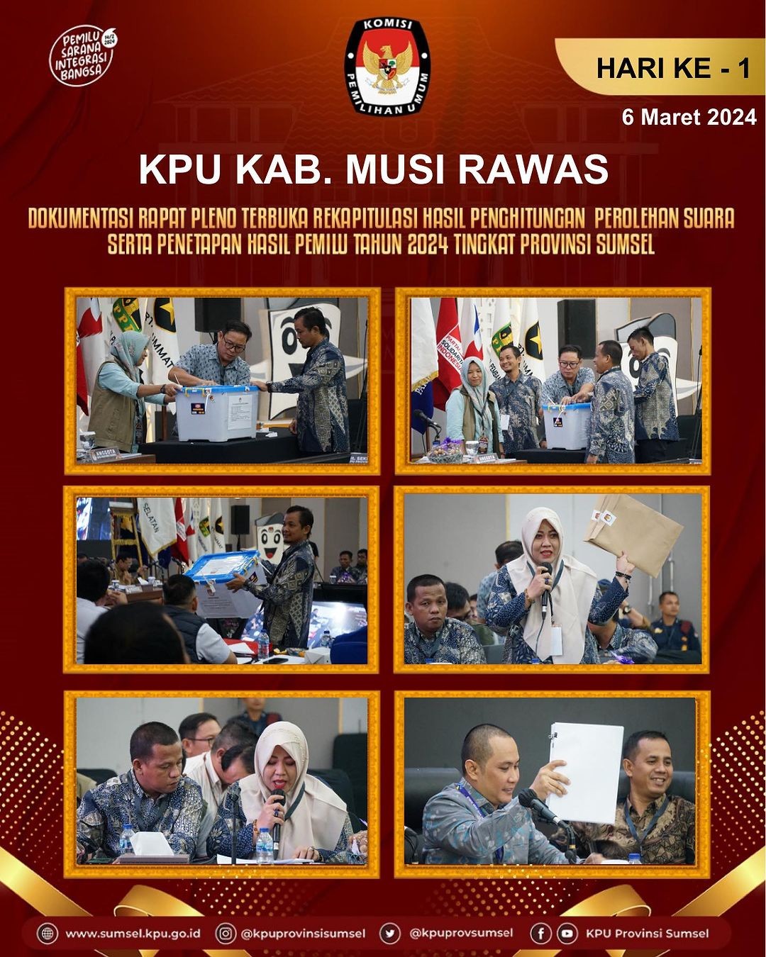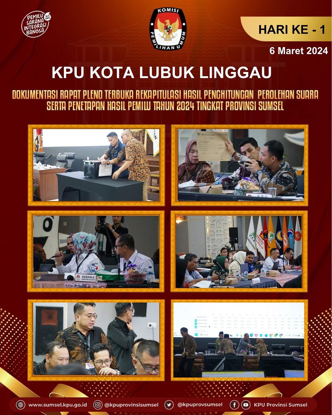 #Temanpemilih, kompilasi rapat pleno terbuka rekapitulasi hasil penghitungan suara Pemilu tahun 2024 tingkat Provinsi Sumatera Selatan hari pertama, Rabu (6/3/2024).