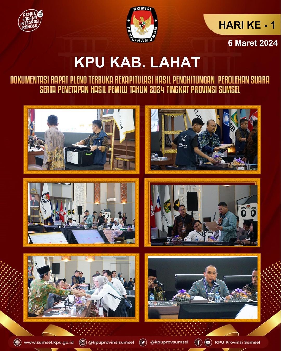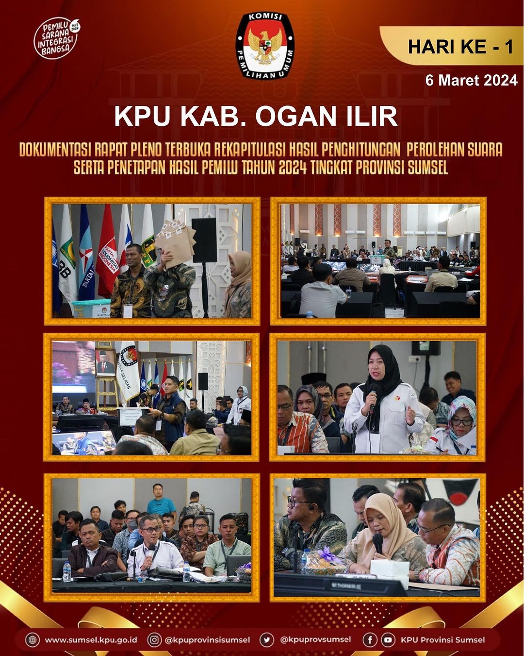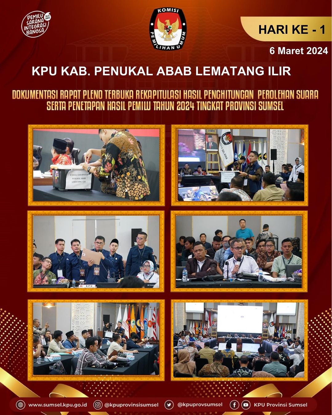 #Temanpemilih, kompilasi rapat pleno terbuka rekapitulasi hasil penghitungan suara Pemilu tahun 2024 tingkat Provinsi Sumatera Selatan hari pertama, Rabu (6/3/2024).