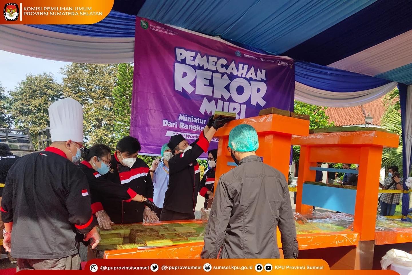 DWP Sekretariat KPU Provinsi Sumsel hadiri Pemecahan Rekor MURI Miniatur Jembatan Ampera dari Rangkaian Bolu Kojo bertajuk "Dari Wanita Sumatera Selatan untuk Indonesia"