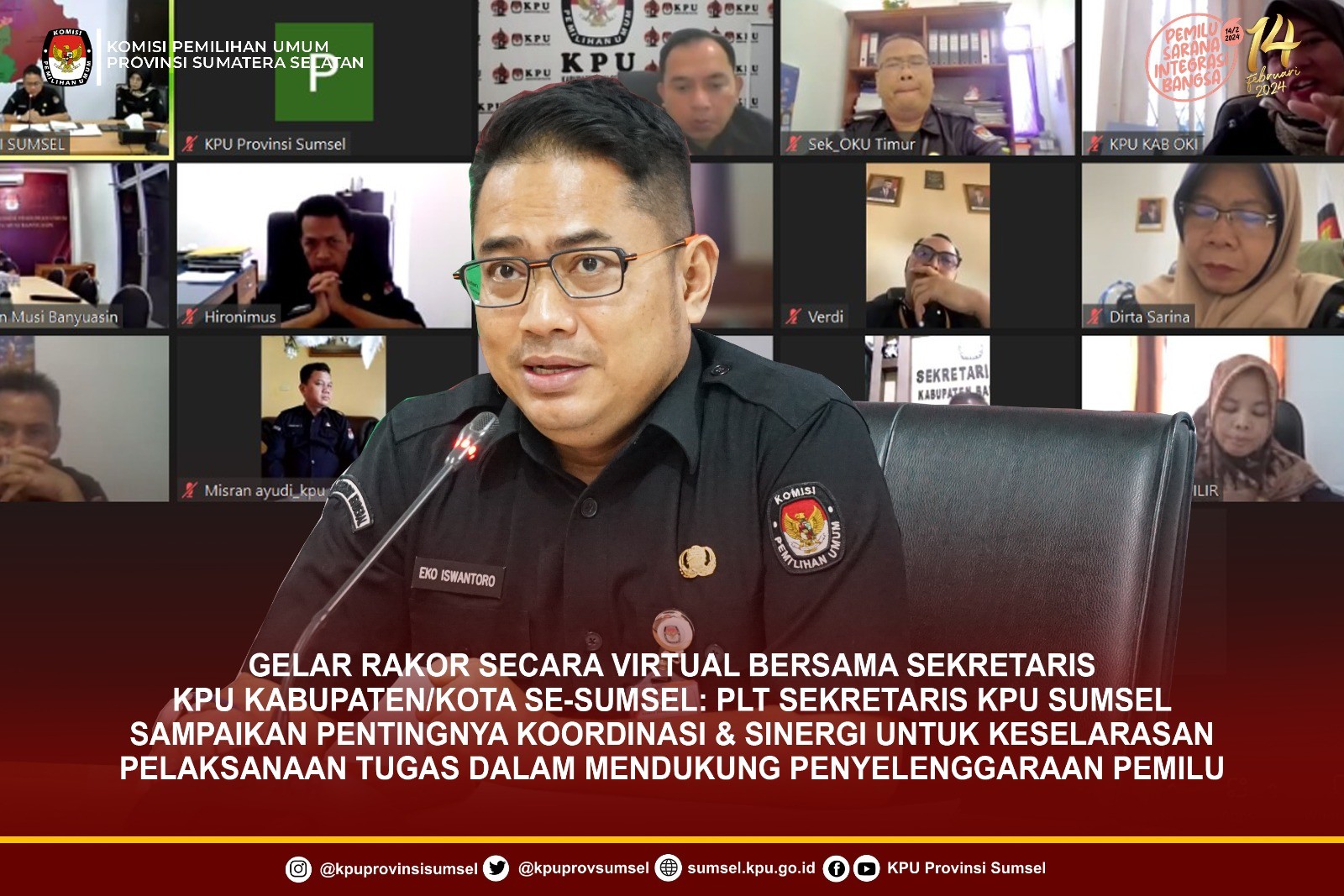 Gelar Rakor Virtual Bersama Sekretaris KPU Kab/Kota se-Sumsel: PLT Sekretaris KPU Sumsel Sampaikan Pentingnya Koordinasi & Sinergi
