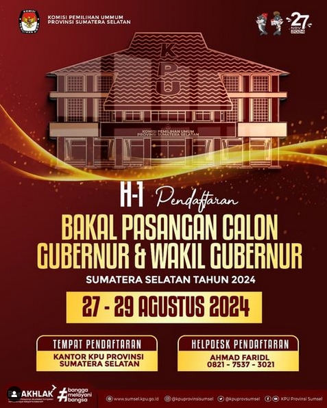 #Temanpemilih, H-1 Pendaftaran Bakal Pasangan Calon Gubernur dan Wakil Gubernur Sumatera Selatan tahun 2024.