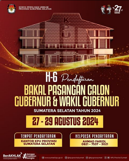 H-6 Pendaftaran Bakal Pasangan Calon Gubernur & Wakil GGubernur Sumatera Selatan 2024