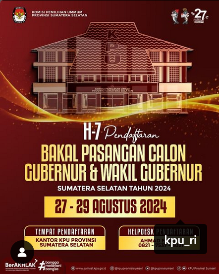 #Temanpemilih, H-7 Pendaftaran Bakal Pasangan Calon Gubernur dan Wakil Gubernur Sumatera Selatan tahun 2024.