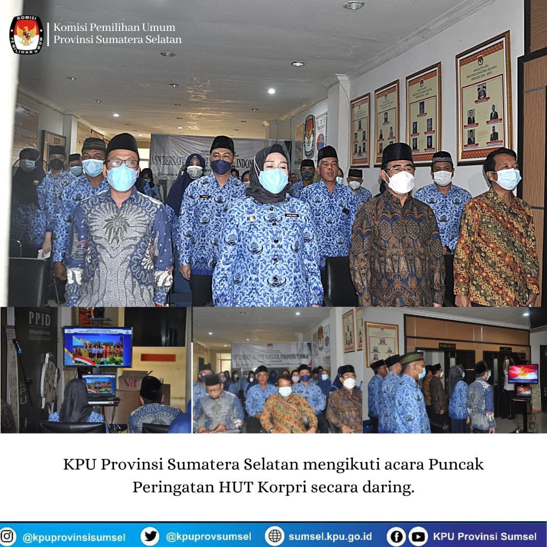 Komisi Pemilihan Umum Provinsi Sumatera Selatan mengikuti secara virtual Puncak Acara Peringatan HUT KORPRI ke-50 dengan tema "ASN bersatu, KORPRI Tangguh, Indonesia Tumbuh".