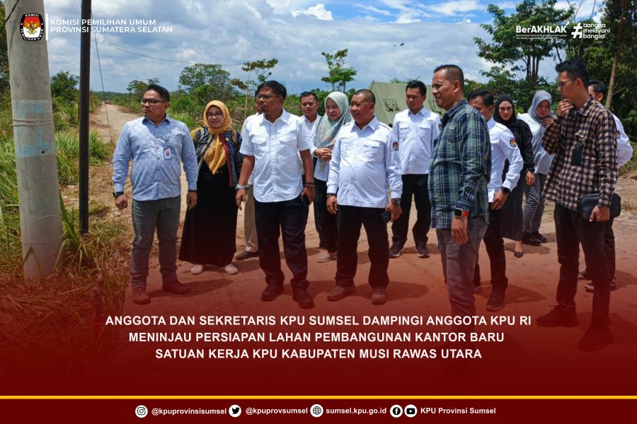 #Temanpemilih Anggota KPU Sumsel Divisi Teknis Penyelenggaraan Pemilu, Bapak Handoko dan Sekretaris KPU Sumsel, Bapak Eko Iswantoro mendampingi Anggota KPU RI, Bapak Idham Kholik meninjau lahan persiapan pembanguan kantor baru satuan kerja KPU Kabupaten Musi Rawas Utara, Kamis (24/4/2025).
