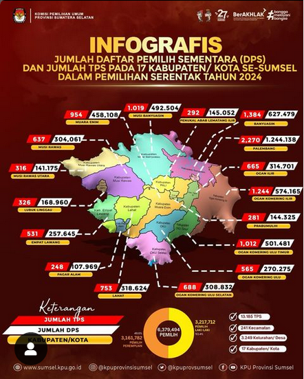 INFOGRAFIS Jumlah Daftar Pemilih Sementara (DPS) dan Jumlah TPS Pada 17 Kabupaten/Kota Se-Sumsel Dalam Pemilihan Serentak Tahun 2024
