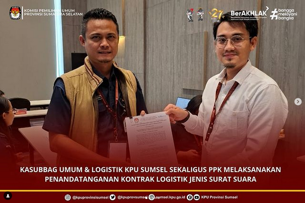 #Temanpemilih Kasubbag Umum dan Logistik sekaligus Pejabat Pembuat Komitmen KPU Sumsel, Bapak Muhamad Habibullah melakukan penandatanganan kontrak logistik jenis Surat Suara pada Pemilihan Gubernur dan Wakil Gubernur kategori 2 dengan PT. Temprina Media Grafika serta ABTN Pemilihan Gubernur dan Wakil Gubernur kategori 2 dengan PT.Macanan Jaya Cemerlang.