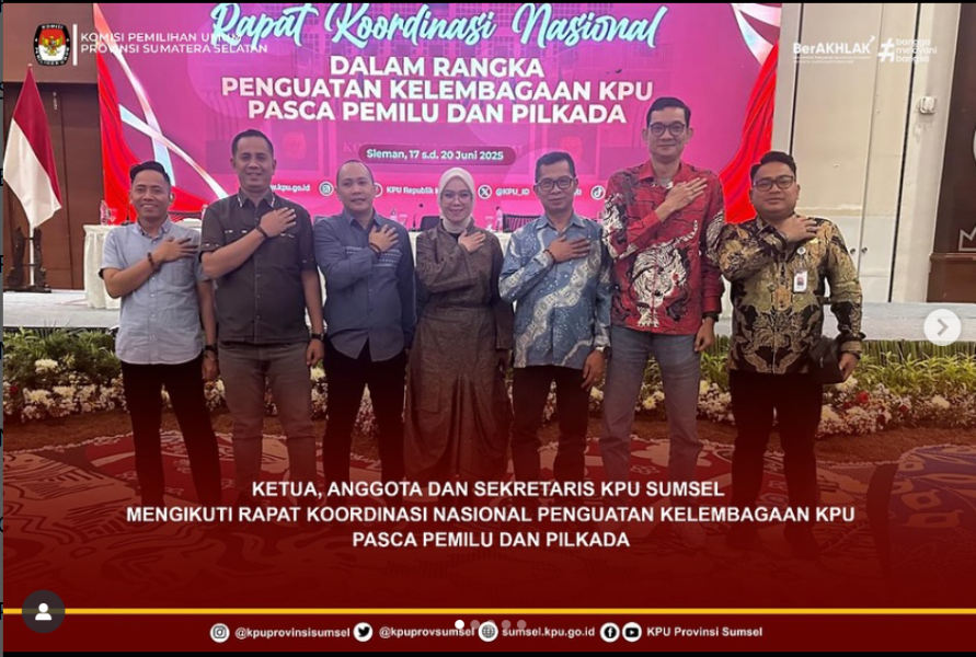 #TemanPemilih Ketua, Anggota dan Sekretaris KPU Sumsel mengikuti rapat koordinasi nasional dalam rangka penguatan kelembagaan KPU pasca Pemilu dan Pilkada di Yogyakarta pada 18-19 Juni 2025.
