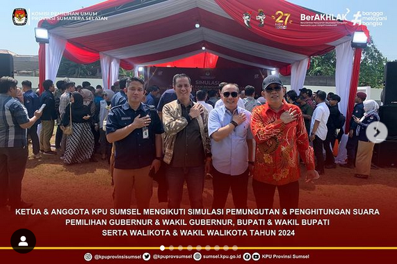 #Temanpemilih Ketua KPU Provinsi Sumatera Selatan, Bapak Andika Pranata Jaya bersama Anggota divisi Teknis Penyelenggaraan Pemilu, Bapak Handoko, dan Anggota Divisi Sosdiklih Parmas dan SDM, Bapak Rudiyanto Pangaribuan menghadiri undangan KPU RI dalam rangka Simulasi Pemungutan dan Penghitungan Suara Pemilihan Tahun 2024 di Depok, Jawa Barat, Sabtu (07/09/2024).