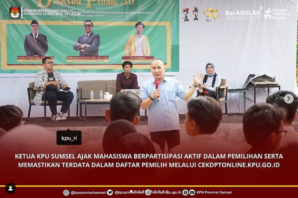 #Temanpemilih Ketua KPU Sumsel ajak mahasiswa berpartisipasi aktif dan memastikan terdata dalam daftar pemilih dengan mengecek melalui cekdptonline.kpu.go.id