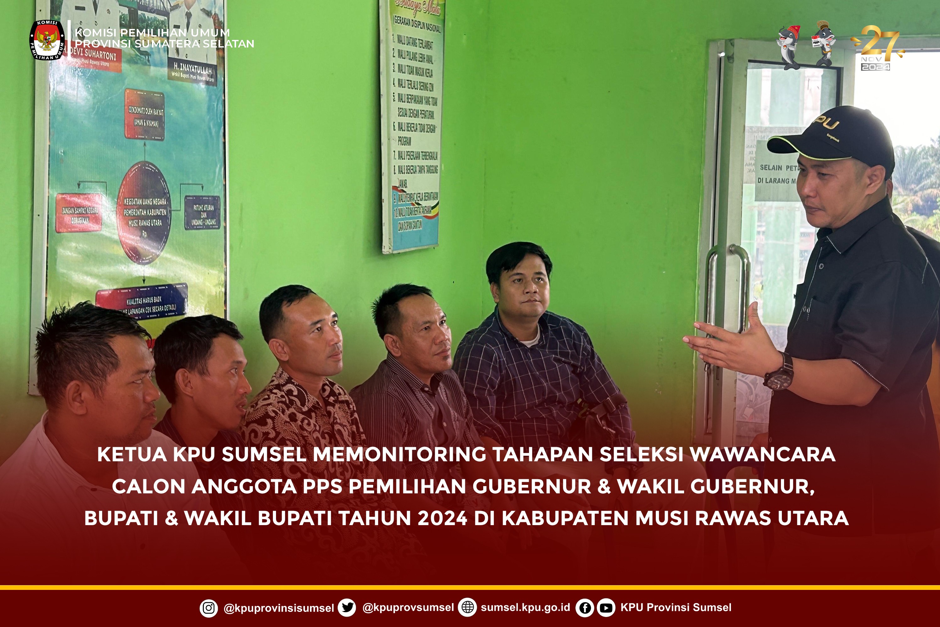 #Temanpemilih Ketua KPU Sumsel, Bapak Andika Pranata Jaya memonitoring tahapan seleksi wawancara calon anggota Panitia Pemungutan Suara (PPS) untuk pemilihan Gubernur dan Wakil Gubernur, Bupati dan Wakil Bupati Tahun 2024 di kabupaten Musi Rawas Utara, Rabu (22/5/2024).