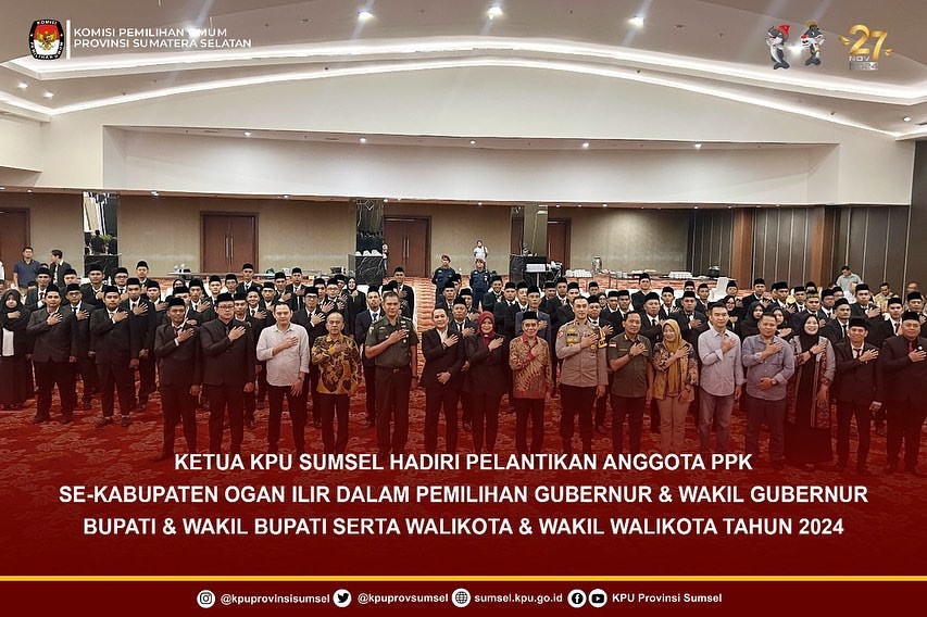 Ketua KPU Sumsel Hadiri Pelantikan Anggota PPK Se-Kabupaten Ogan Ilir Dalam Pemilihan Pilkada Tahun 2024