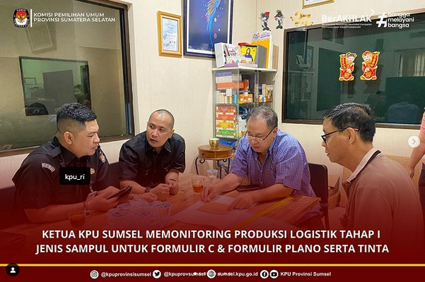Monitoring ini dilakukan Ketua KPU Sumsel guna memastikan pengadaan logistik Pemilihan 2024 di Sumsel tepat jenis, tepat jumlah, tepat kualitas, tepat waktu, tepat sasaran dan tepat biaya.