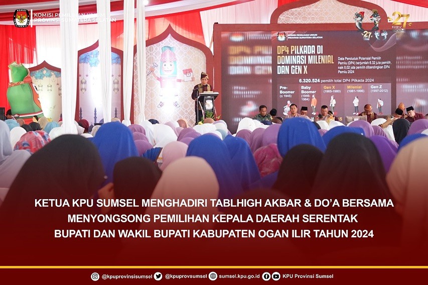 Ketua KPU Sumsel Menghadiri Tablhigh Akbar & Do'a Bersama Menyongsong Pemilihan Kepala Daerah Serentak Bupati dan Wakil Bupati Kabupaten Ogan Ilir Tahun 2024