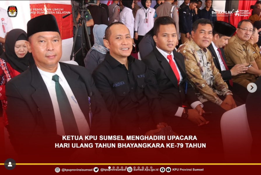 Ketua KPU SUMSEL Menghadiri Upacara Peringatan Hari Ulang Tahun Bhayangkara Ke 79 Tahun