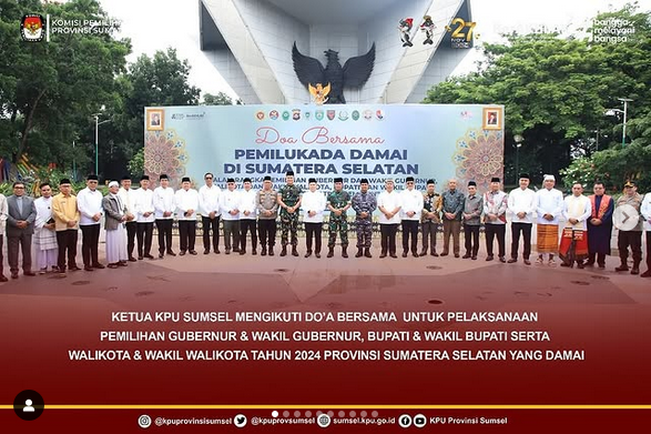 #Temanpemilih Ketua KPU Sumsel, Bapak Andika Pranata Jaya menghadiri kegiatan Do’a Bersama dalam rangka Pemilukada Damai di Sumsel Tahun 2024, di kawasan Monpera Palembang, Minggu (24/11/2024) pagi.
