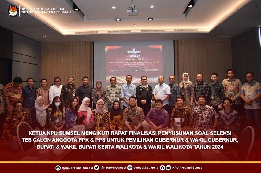 Ketua KPU Sumsel Mengikuti Rapat Finalisasi Penyusunan Soal Seleksi Tes Calon Anggota PPK & PPS Untuk Pemilihan Pilkada Tahun 2024