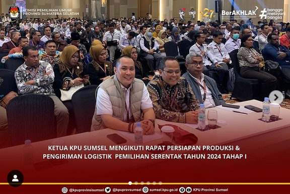 #Temanpemilih Ketua KPU Sumsel, Bapak Andika Pranata Jaya mengikuti rapat persiapan produksi dan pengiriman logistik Pemilihan Gubernur dan Wakil Gubernur, Bupati dan Wakil Bupati serta Walikota & Wakil Walikota tahun 2024 tahap I