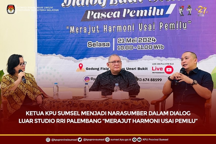 Ketua KPU Sumsel Menjadi Narasumber Dalam Dialog Luar Studio RRI Palembang "Merajut Harmoni Usai Pemilu"
