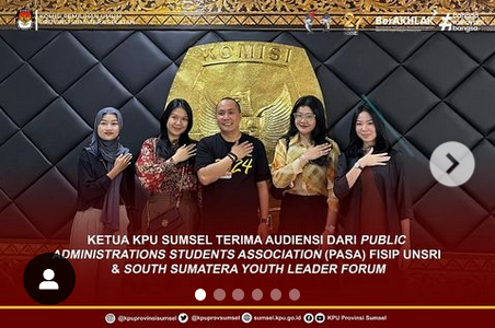 #Temanpemilih, Ketua KPU Sumsel, Bapak Andika Pranata Jaya menerima audiensi dari Pengurus Public Administrations Students Association (PASA) Fisip Unsri dan South Sumatera Youth Leader Forum, Sabtu (17/8/2024).