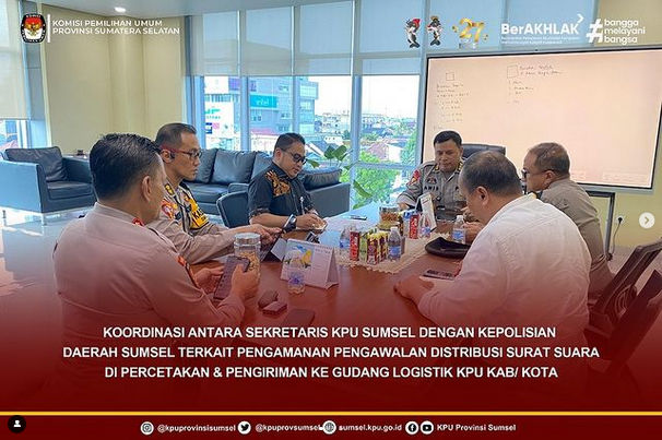 #Temanpemilih Sekretaris KPU Sumsel, Bapak Eko Iswantoro melaksanakan rapat koordinasi terkait pembahasan metode pengamanan dan pengawalan surat suara di percetakan dan pengiriman ke gudang logistik KPU Kabupaten/ Kota, Jum'at (11/10/2024).