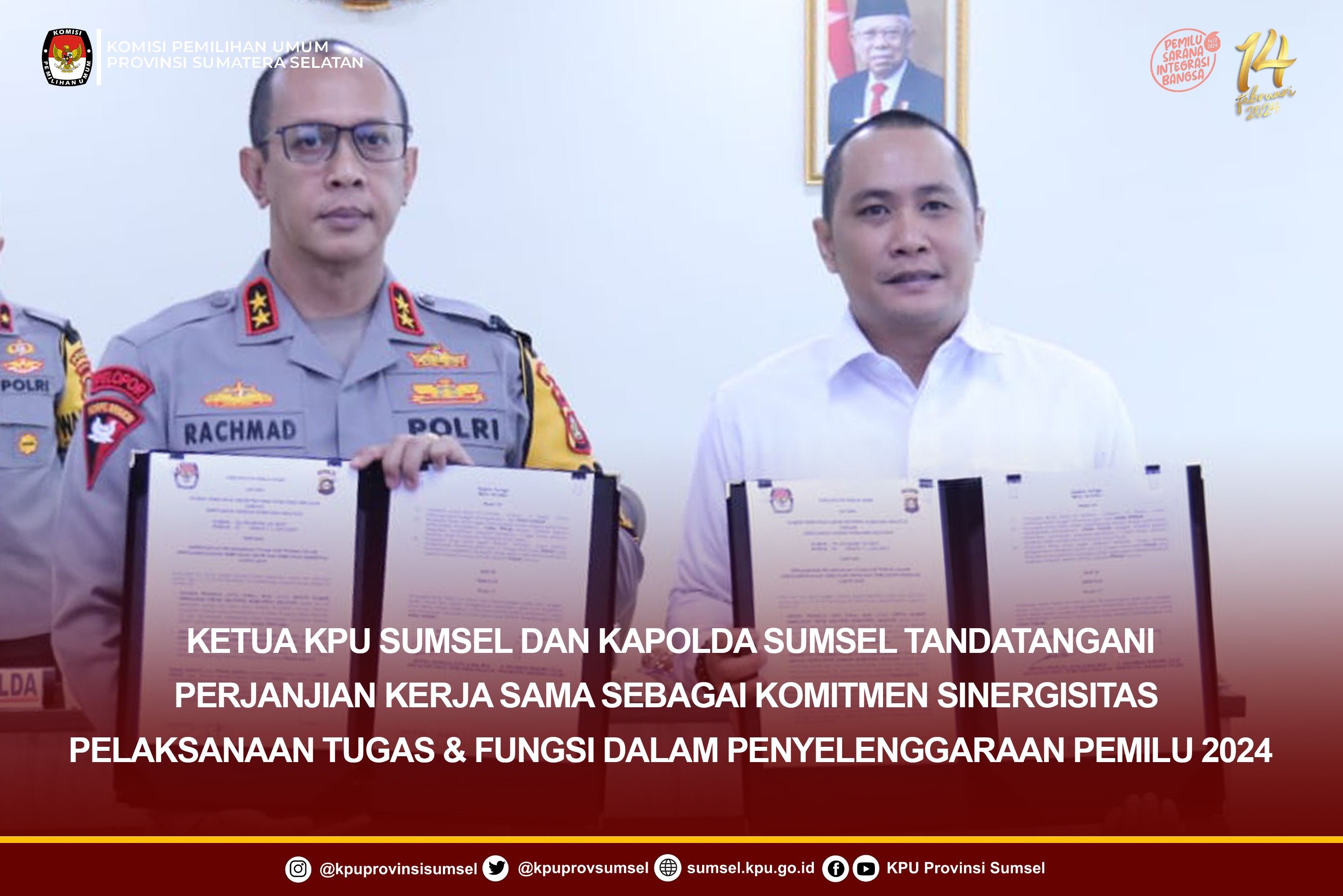 "Semoga dengan dilaksanakannya perjanjian ini, dapat memperkuat sinergitas antara KPU Sumsel dan Polda Sumsel rangka penyelenggaraan Pemilu Serentak Tahun 2024 yang aman, damai dan sukses" terang Bapak Andika.