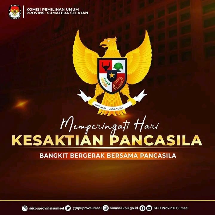 #Temanpemilih, KPU Provinsi Sumatera Selatan mengucapkan, “selamat memperingati hari kesaktian Pancasila”, 1 Oktober 2022.