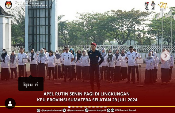KPU Provinsi Sumatera Selatan melaksanakan apel rutin senin pagi di lingkungan sekretariat KPU Sumsel, (29/7/2024).