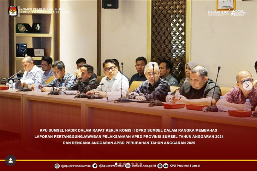 #Temanpemilih KPU Provinsi Sumatera Selatan menghadiri Rapat Kerja Komisi I DPRD Provinsi Sumatera Selatan dalam rangka membahas Laporan Pertanggungjawaban Pelaksanaan APBD Provinsi Sumatera Selatan Tahun Anggaran 2024 dan Rencana Anggaran APBD Perubahan Tahun Anggaran 2025 di Fuang Rapat Komisi I DPRD Sumsel, Sabtu (28/6/2025).
