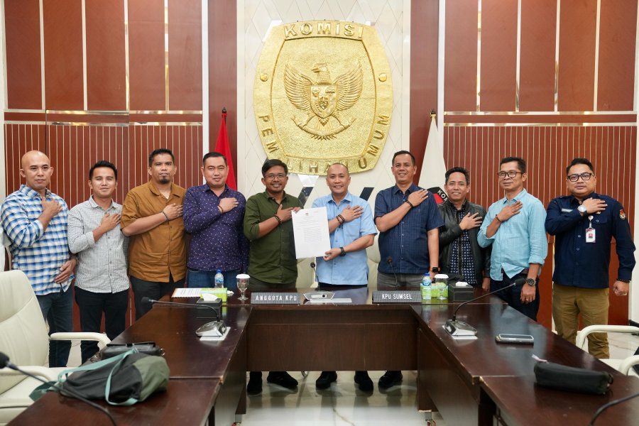 #Temanpemilih Ketua KPU Sumsel, Bapak Andika Pranata Jaya; Anggota Divisi Teknis Penyelenggaraan Pemilu, Bapak Handoko; Anggota Divisi Hukum dan Pengawasan, Bapak Nurul Mubarok; Anggota Divisi Perencanaan Data dan Informasi serta Sekretaris, Bapak Eko Iswantoro mendampingi Jajaran KPU Empat Lawang Menyampaikan dokumen rekapitulasi hasil penghitungan perolehan suara tingkat Kabupaten dalam Pemungutan Suara Ulang (PSU) pemilihan Bupati dan Wakil Bupati Empat Lawang tahun 2024 pasca putusan Mahkamah Konstitusi, Selasa (29/4/2025).