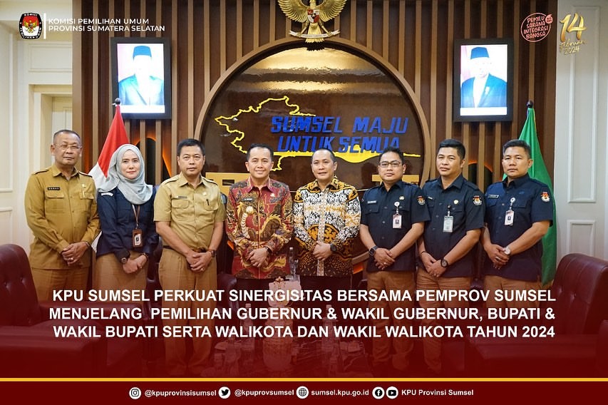 #Temanpemilih, Laksanakan Audiensi bersama PJ Gubernur Sumsel, KPU Sumsel perkuat sinergisitas bersama Pemerintah Provinsi Sumatera Selatan dalam penyelenggaraan Pemilihan Gubernur dan Wakil Gubernur, Bupati dan Wakil Bupati serta Walikota dan Wakil Walikota di Provinsi Sumatera Selatan tahun 2024.