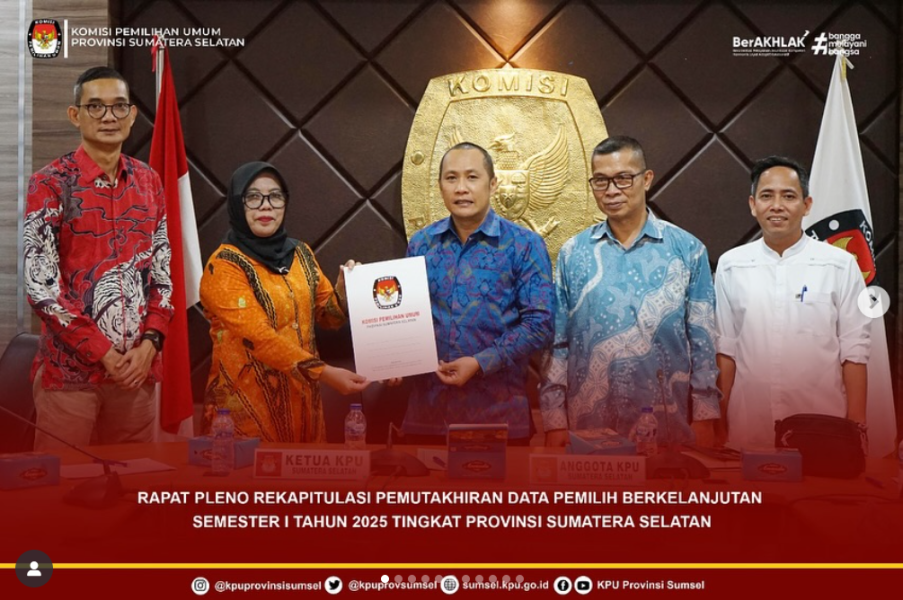 KPU Sumsel Tetapkan Rekapitulasi Daftar Pemilih Berkelanjutan (DPB) Provinsi Sumatera Selatan Semester I Tahun 2025