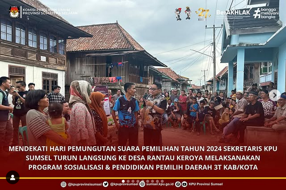 Mendekati Hari Pemungutan Suara Pemilihan Tahun 2024 Sekretaris KPU Sumsel Turun Langsung Ke Desa Rantau Keroya Melaksanakan Program Sosialisasi & Pendidikan Pemilih Daerah 3T Kab/Kota