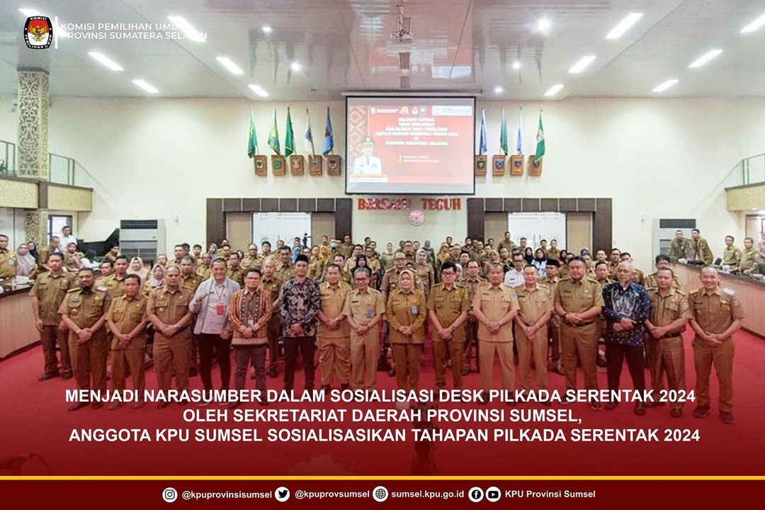 Menjadi Narasumber Dalam Sosialisasi Desk Pilkada Serentak 2024 Oleh Sekretriat Daerah Provisi Sumsel, Anggota KPU Sumsel Sosialisasi Tahapan Pilkada Serentak 2024