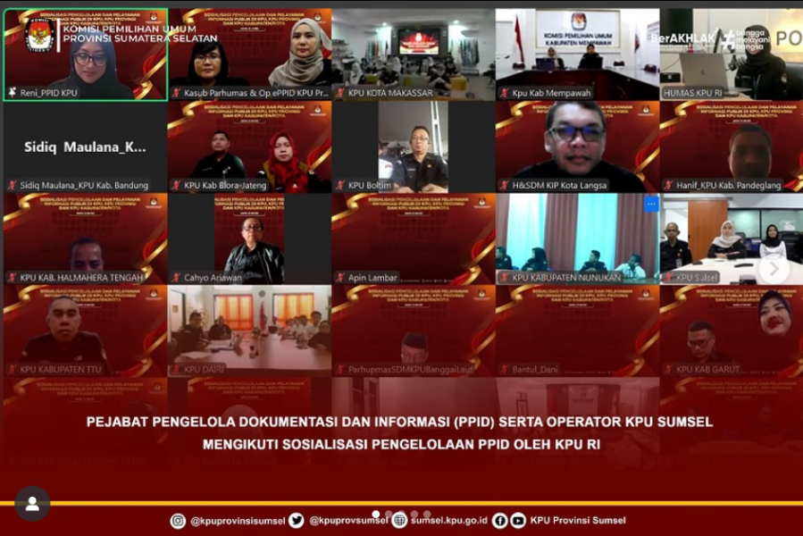 Pejabat Pengelola Dokumentasi dan Informasi (PPID) serta Operator KPU SUMSEL Mengikuti Sosialisasi Pengelolaan PPID oleh KPU RI