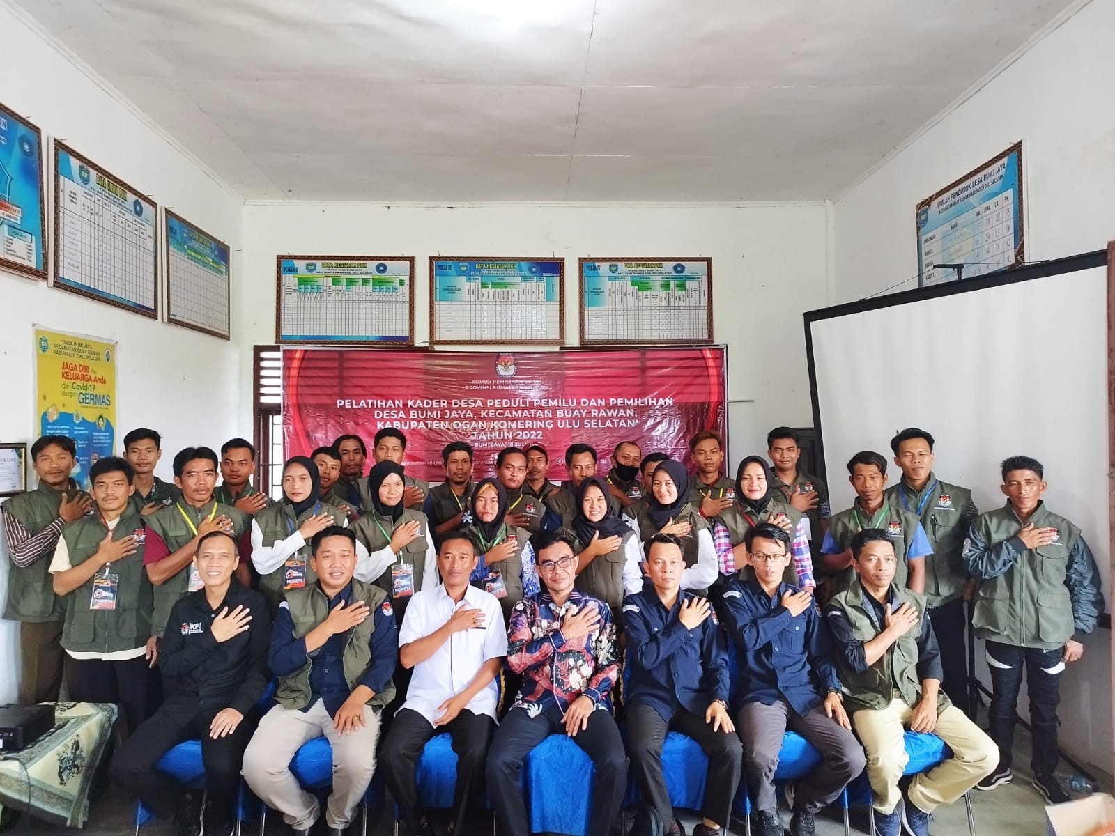 Kabupaten Oku Selatan, menjadi salah satu bidikan Pelatihan dasar kader desa peduli Pemilu dan Pemilihan yang bertempat di Desa Bumi Jaya Kecamatan Buay Rawan tepatnya di kantor kepala Desa tersebut. Acara dimulai pukul 08.15 WIB tanggal 13 Juli 2022 yang dibuka langsung oleh Bapak Hendri Daya Putra selaku Anggota KPU Sumatera Selatan Divisi Teknis Penyelenggara Pemilu. Dalam sambutan mengatakan Komisi Pemilihan Umum beserta Jajaran, sebagai Penyelenggara Pemilu dan Pemilihan di Indonesia, memiliki komitmen untuk terus mencerdaskan pemilih serta meningkatkan kuantitas dan kualitas partisipasi masyarakat melalui pendidikan pemilih kepada masyarakat. Pemilih yang cerdas akan bersikap rasional, mandiri, dan bertanggung jawab. Ketika menentukan pilihan politiknya, pemilih tidak berorientasi pada kepentingan jangka pendek seperti uang, kekuasaan, dan kompensasi material lainnya, melainkan berorientasi pada kompetensi dan integritas kandidat atau partai politik. Acara berlangsung yang di hadiri 25 orang kader desa Bumi Jaya Kecamatan Buay Rawan Kabupaten Oku Selatan, dengan tertib dan lancar serta aman hingga tiba pada akhirnya pemberian pemakaian rompi secara simbolis oleh anggota KPU provinsi Sumatera Selatan Bapak Hendri Daya Putra kepada Peserta serta dan di akhiri dengan acara Penandatangan Perjajian Kerjasama antara KPU dan Kepala desa setempat.
