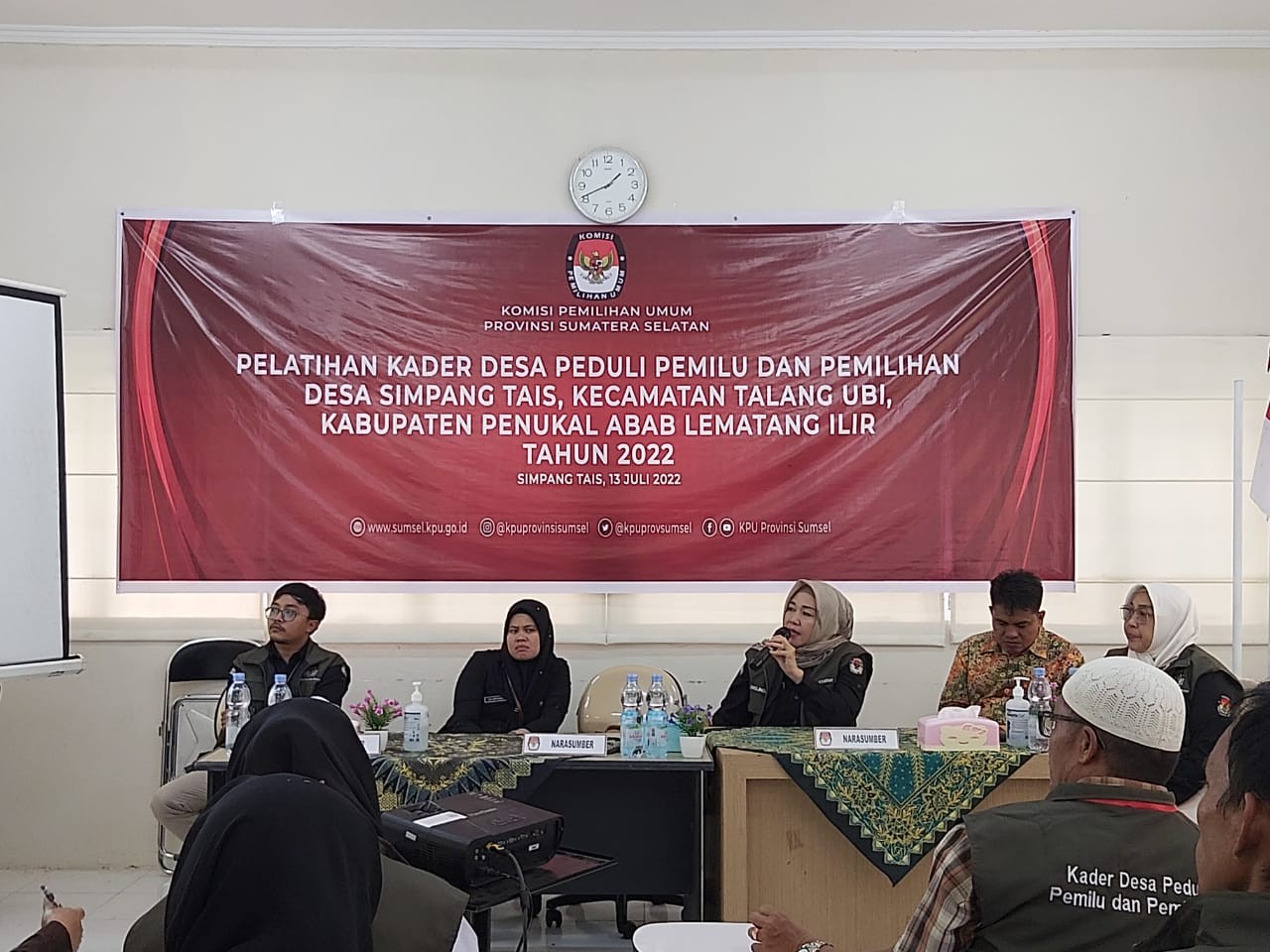 PELATIHAN KADER DESA PEDULI PEMILU DAN PEMILIHAN DESA SIMPANG TAIS, KECAMATAN TALANG UBI, KABUPATEN PENUKAL ABAB LEMATANG ILIR