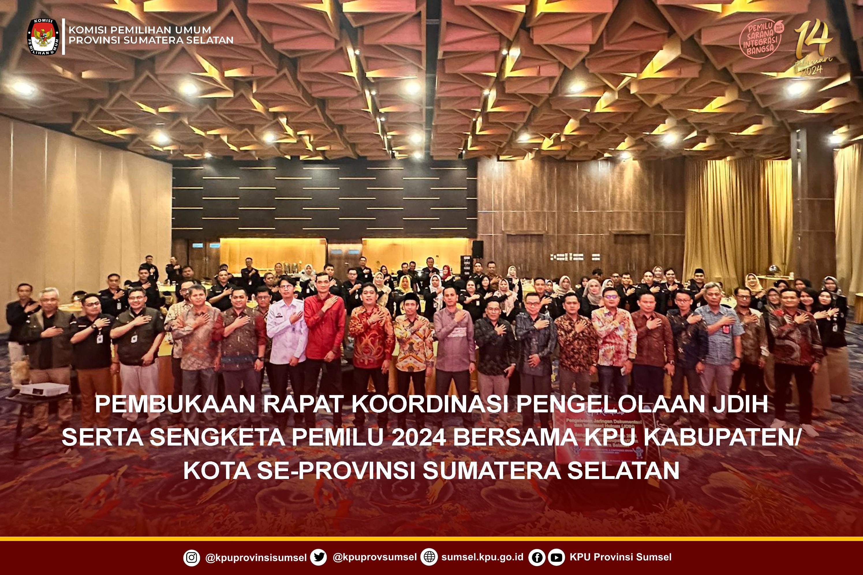 #Temanpemilih, Pembukaan Rapat Koordinasi Pengelolaan Jaringan Dokumentasi Informasi Hukum (JDIH) serta Sengketa Pemilu 2024 bersama KPU Kabupaten/Kota se-Provinsi Sumatetra Selatan di Hotel Aston Palembang, Rabu (6/12/2023).